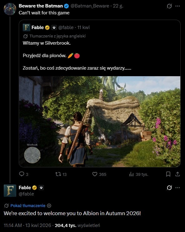 Playground Games, czyli twórcy Fable, dość szybko zareagowali na zaistniałą sytuację. Nie wystosowali jednak długiego oświadczenia z tłumaczeniami, a krótko odpowiedzieli na wpis na X. W wiadomości zawarli informację, że Fable zadebiutuje jesienią 2026 roku.