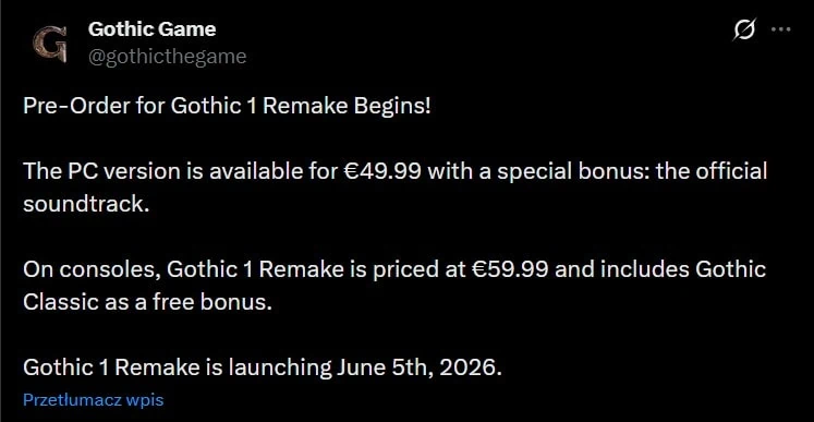 Co sądzicie o wycenie Gothic Remake? Dajcie znać w komentarzach!