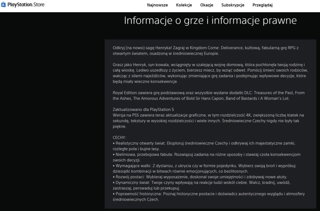 Na karcie na karcie produktu w PlayStation Store dostrzeżono zmieniony opis, który nie pozostawia żadnych wątpliwości (i jednocześnie „psuje” szykowaną przez deweloperów niespodziankę). Warhorse Studios ma w planach m.in. podbicie natywnej rozdzielczości oraz gruntowane odświeżenie tekstur.