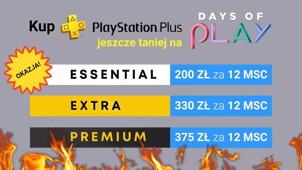 Zainteresowany(a)? Czytaj dalej, wybierając nagłówek z subskrypcją, która Cię interesuje – opisaliśmy sposoby na tańszy PS Plus Essential, Extra oraz Premium. Wg zapewnień Sony odnośnie Days of Play, sposoby zadziałają u Wszystkich – u nowych, obecnych i powracających użytkowników.