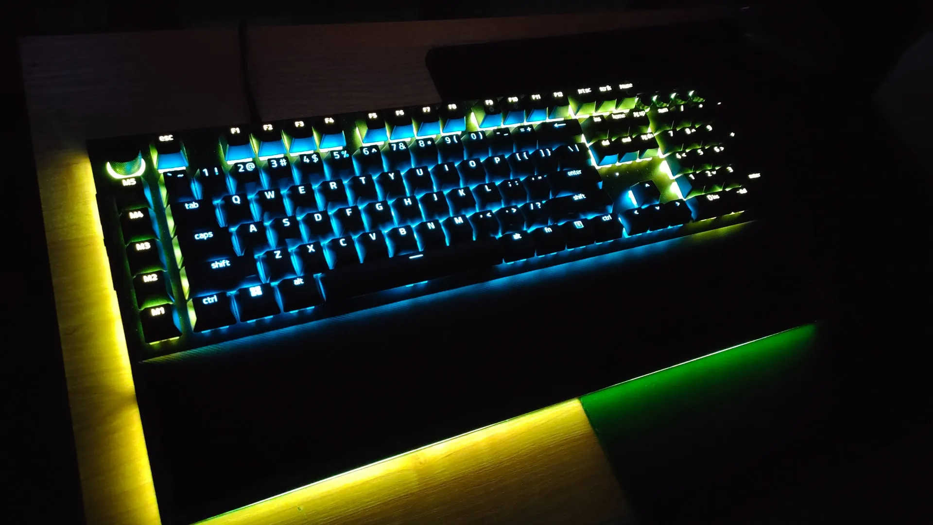 Urządzenie jest odrobinę większe od swojej „starszej siostry”, czyli wersji BlackWidow V3 Pro. Oprócz tego sam design jest przyjemniejszy dla oka i jakby bardziej współczesny, mimo pozornie niewielkich różnic. Jak na sprzęt gamingowy przystało, nie mogło zabraknąć imponującego oświetlenia RGB. To atakuje nas nie tylko spod przycisków, ale też wzdłuż brzegów korpusu.