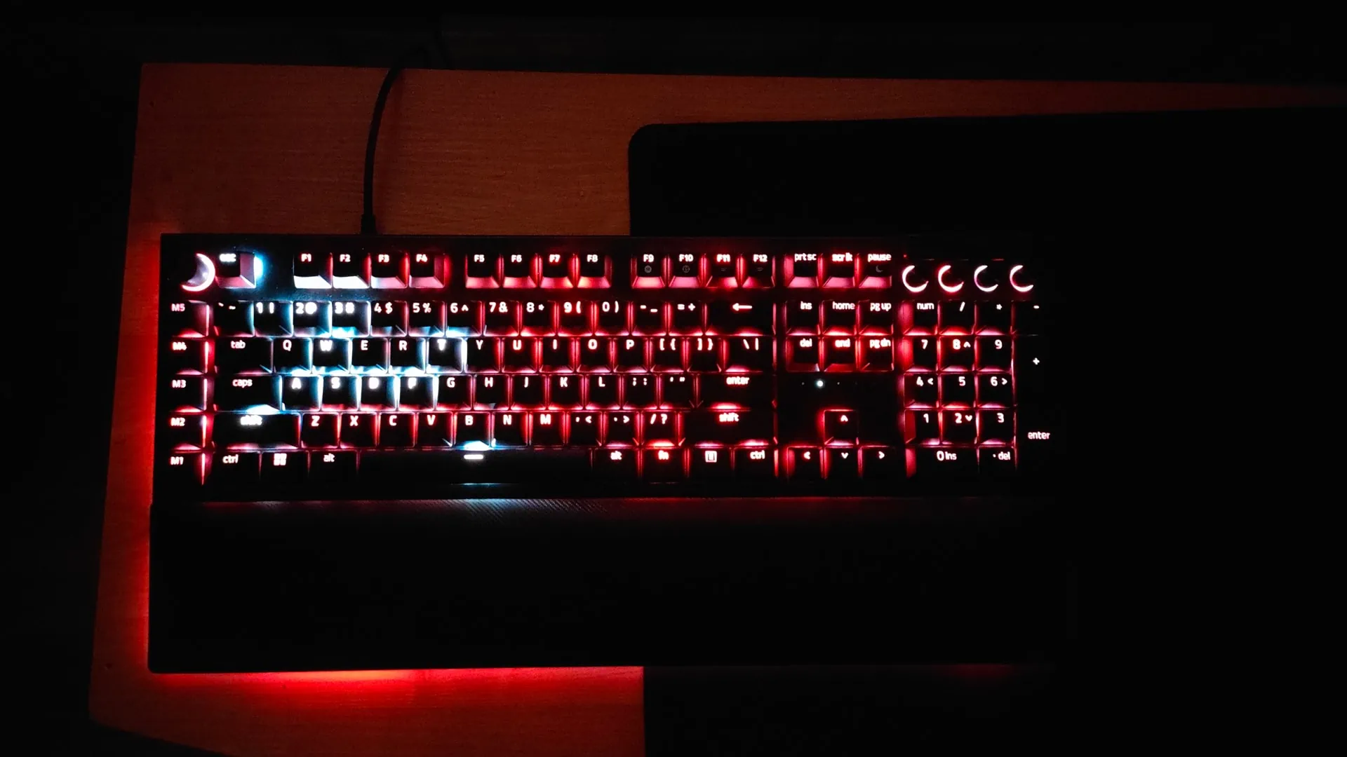 Co ważne — omawiany element nareszcie zyskał magnetyczny system montażu, dzięki czemu trochę lepiej „trzyma się” klawiatury. Ciekawostką jest kwestia oświetlenia, ponieważ to jest obecne również na brzegach podkładki. Komunikacja między poduszką a samym urządzeniem wymusiła zastosowanie specjalnego łącza — widzę tu niewielkie ryzyko uszkodzenia tego konektora, ale warto pamiętać o jego obecności.