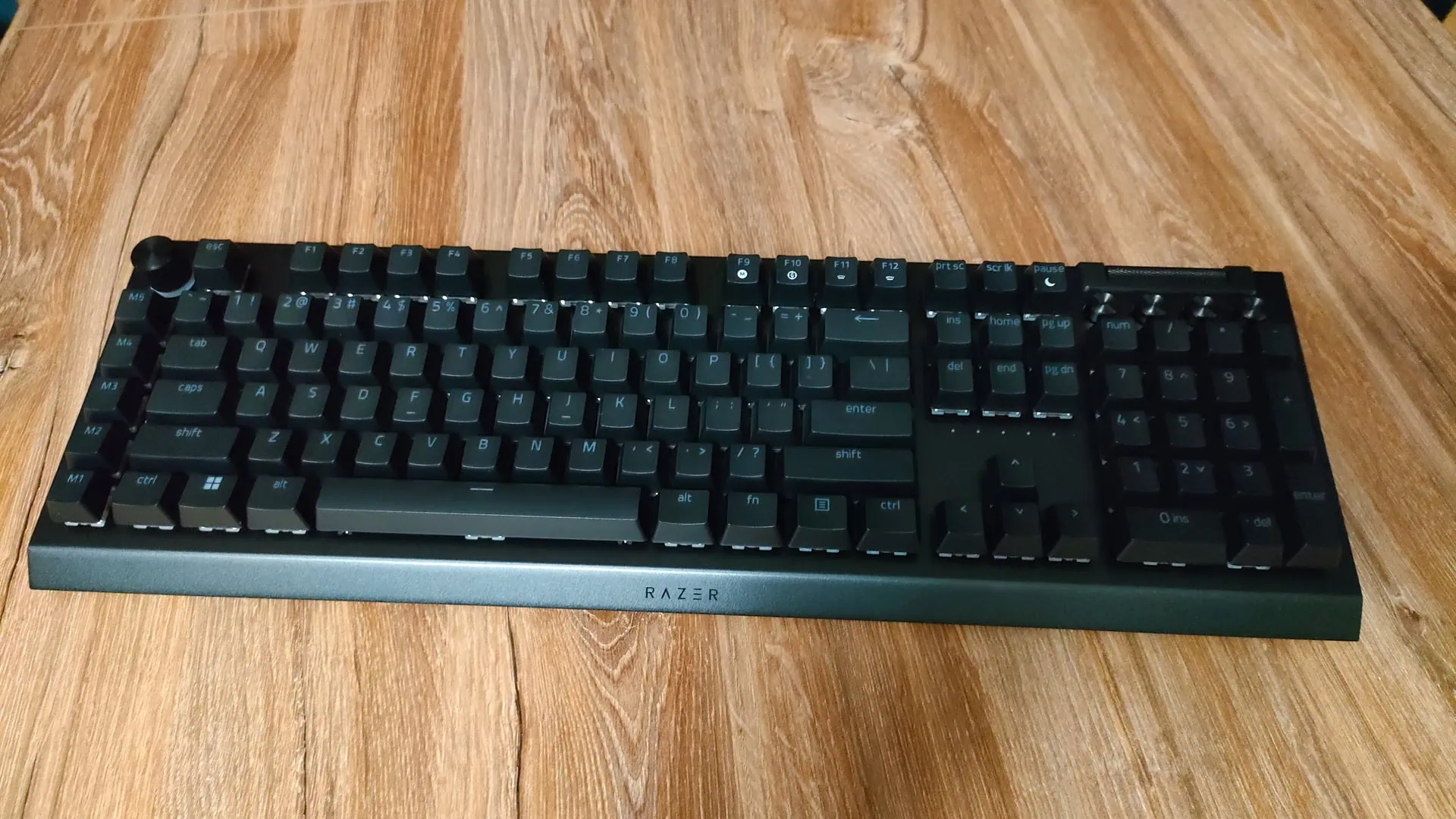 Jak zatem korzysta się z flagowej klawiatury Razera? Przyciski pracują pewnie i dość cicho, stawiają bardzo niewielki opór. Jednocześnie są bardzo responsywne i nieźle „odbijają”, dzięki czemu są błyskawicznie gotowe do kolejnej aktywacji. Po niemal 30 godzinach wspólnych przygód z Razer BlackWidow V4 Pro nie zauważyłem szczególnej różnicy między częstotliwością raportowania na poziomie 1000 Hz i 8000 Hz — oczywiście dopuszczam myśl, że to efekt braku nadludzkiego refleksu i ogólnie pojętych umiejętności w grach.